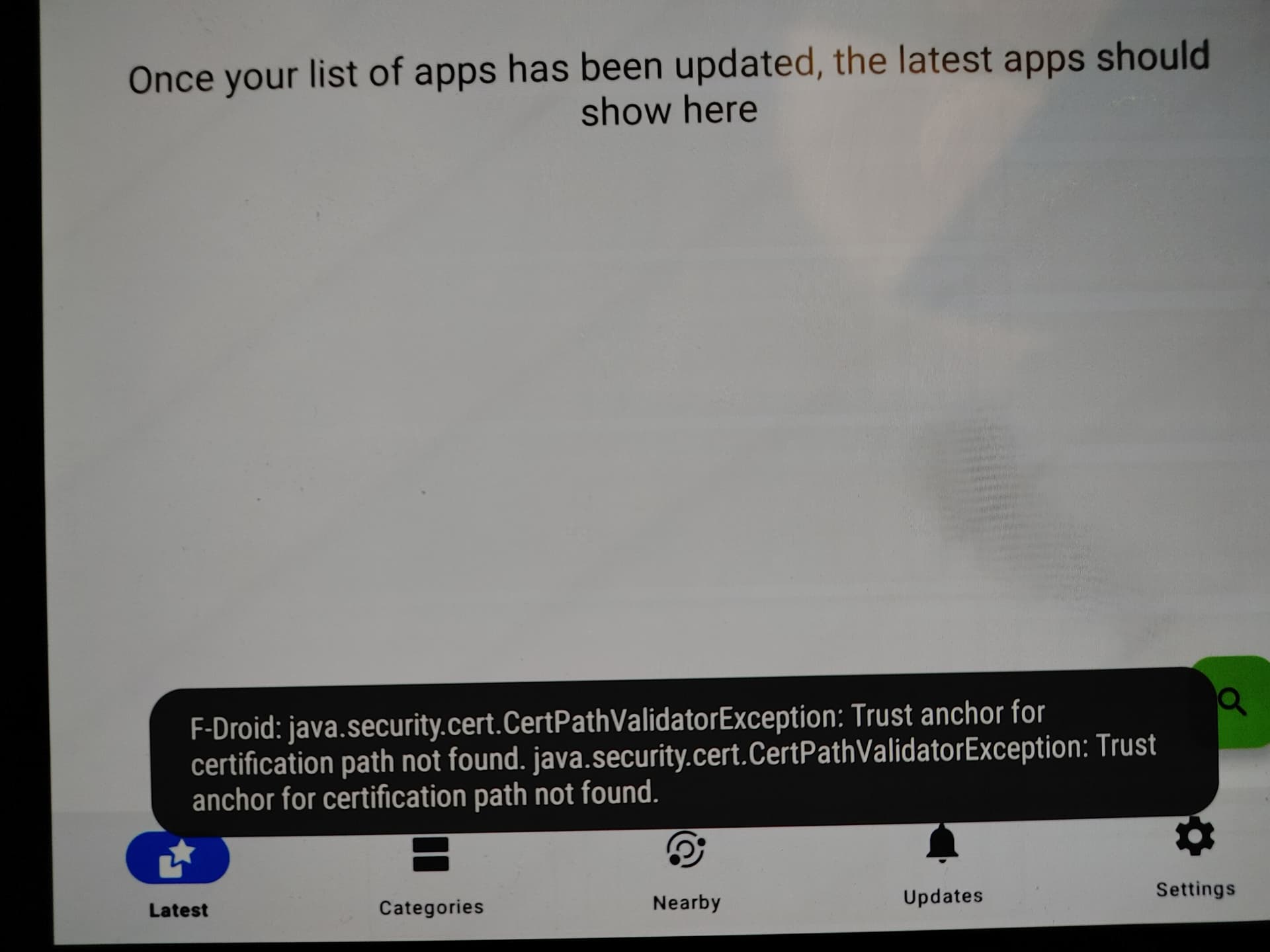 read Running on old Android versions | F-Droid - Free and Open Source Android App Repository install the certificate, retry